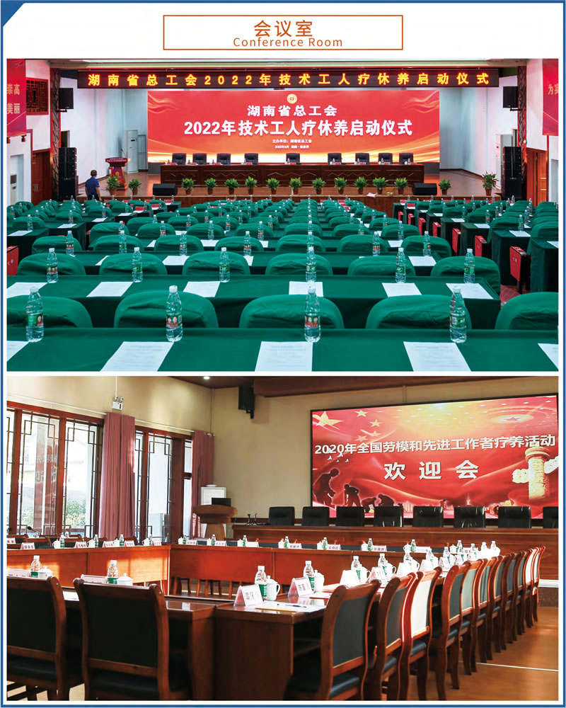 這里設(shè)施完備,環(huán)境優(yōu)美。占地70余畝,建筑面積23000余平方米,由多座湘西民族風(fēng)格的園林建筑群組成。院外依山傍水,院內(nèi)綠樹成蔭,環(huán)境優(yōu)美怡人,F(xiàn)有客房4棟,各類客房279間,中西餐廳可滿足500人同時就餐。大小多功能會議室、棋牌室、健身房、藍球場、羽毛球場等設(shè)施均有配備。
