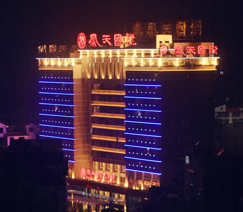 鳳凰鳳天國際大酒店總投資2.68億元,13層至尊高度?偯娣e30000多平方米,氣宇軒華。共有300余間豪華客房。地下停車場(chǎng),會(huì)務(wù)中心,健身中心,中西餐廳,咖啡廳,等配套設(shè)施一應(yīng)俱全。集會(huì)展、旅游、休閑娛樂于一體,卓爾不凡,盡顯大家風(fēng)范。宴會(huì)廳是目前鳳凰最大,可同時(shí)容納1000人就餐。