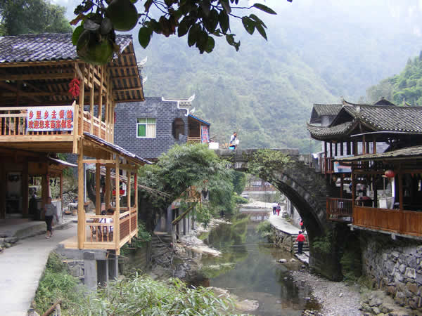 古老的苗寨:矮寨的德夯非常有名,它是一個典型的苗族村寨,湘渝公路最險的一段就經(jīng)過這里,在水平的100米之內(nèi),公路共繞了13個彎,上升了數(shù)百米,如果你來這里,勇氣可以得到很好的鍛煉。在矮寨以西10公里的地方,有著名的流紗瀑布,據(jù)說該瀑布的落差達216米,雄踞全國之最。由于峽谷的風很大,使得水流左右飄舞,“流紗”二字恰好能描繪出它的特點。