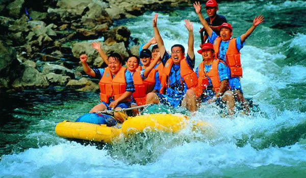將離開王村之際,導(dǎo)游說猛洞河就在王村附近,不如去漂流一番。這個提議得到了大家的熱烈擁護:早就聽說過猛洞河“天下第一漂”的美名,怎么可以迎面錯過?于是揮師猛洞河,不過因為是臨時決定,時間上比較緊張,我們必須在兩個小時內(nèi)完成漂流——據(jù)說這是項不可能完成的任務(wù)。