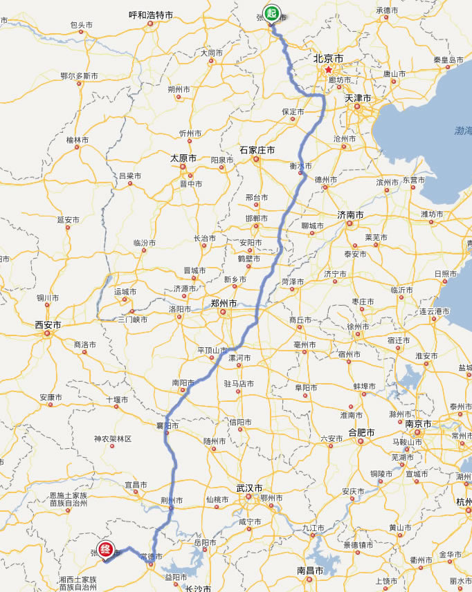 張家口到張家界自駕車(chē)線(xiàn)路(距離最短)