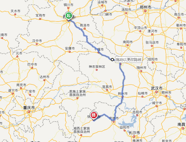左右,沿途經過西安——十堰——襄陽——荊門——荊州——澧縣——石門縣——慈利縣——張家界市。