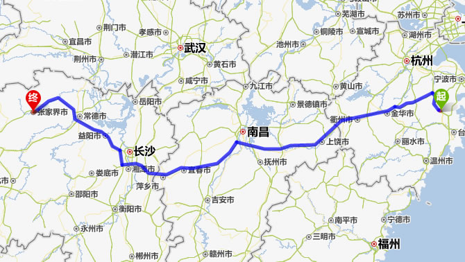 天臺(tái)去張家界自駕車(chē)自助游線(xiàn)路圖全程高速):