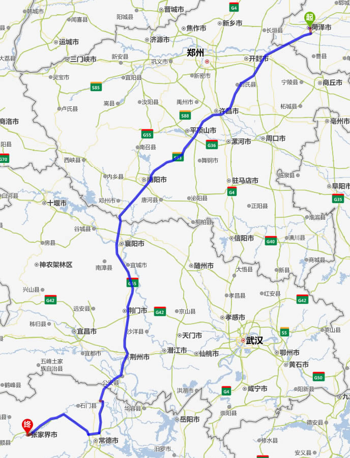 菏澤去張家界自駕車(chē)自助游線路圖全程高速):