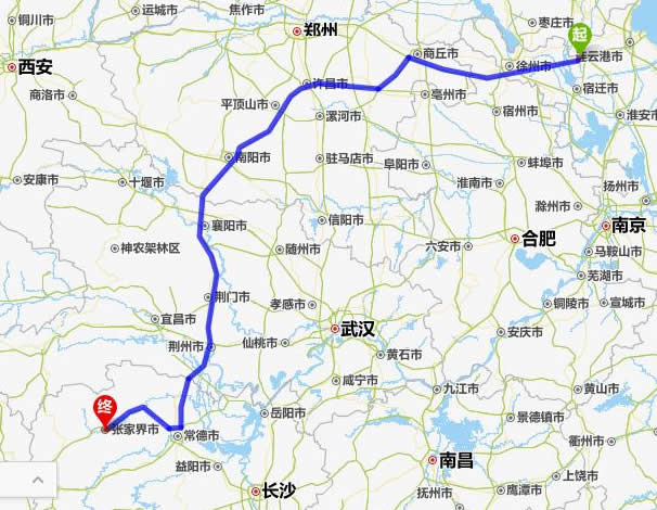 新沂去張家界自駕車(chē)自助游線路圖全程高速):