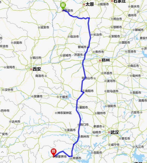 呂梁去張家界自駕車(chē)自助游線路圖全程高速):