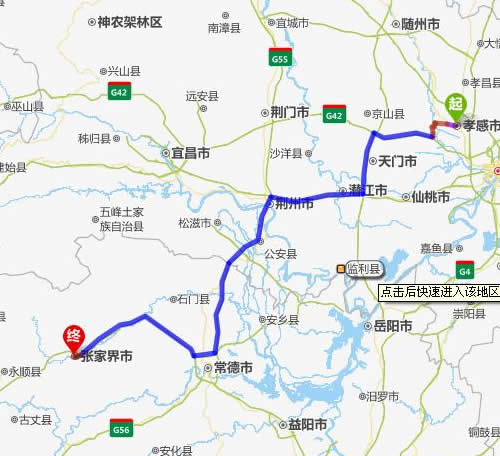 現(xiàn)在位置:張家界旅行社->交通指南->自駕車(chē)路線 -> 孝感到張家界旅游自駕車(chē)線路-孝感去張家界自己開(kāi)車(chē)要多長(zhǎng)時(shí)間,有多少公里