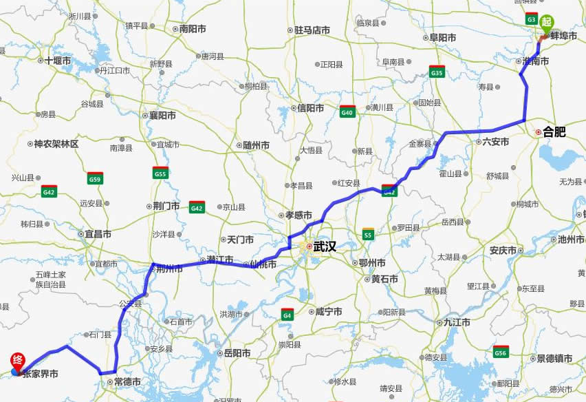 蚌埠去張家界自駕車自助游線路圖全程高速):